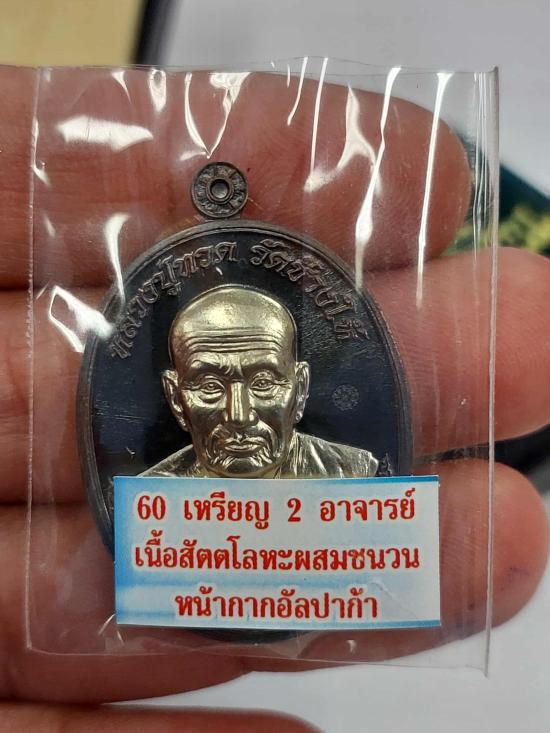 วัดใจเคาะเดียงแดง เหรียญ 2 อาจารย์ เจ้าสัวพันล้าน บอยท่าพระจันทร์ เนื้อสัตตโลหะผสมชนวน หน้ากากอัลปาก้า |