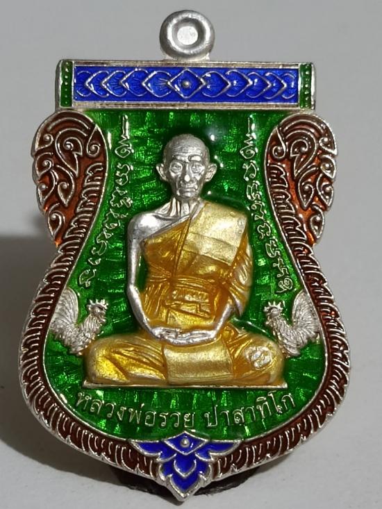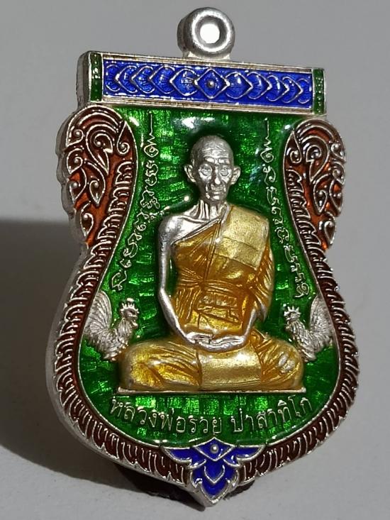 เหรียญเสมา [ เนื้อเงินลงยาแท้ ] หลวงพ่อรวย วัดตะโก อยุธยา ปี 64 รุ่นบูชาครู ตอกโค๊ตหมายเลข 2597