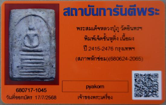 พระสมเด็จหลวงปู่ภู วัดอินทรฯ ปี 2415- 2476 พิมพ์เจ็ดชั้นหูติ่ง หักซ่อมแทบมองไม่เห็น มาพร้อมบัตรรับรอง รับประกันพระแท้ๆ แบบสากลตลอดชีพ และตามกฎครับ