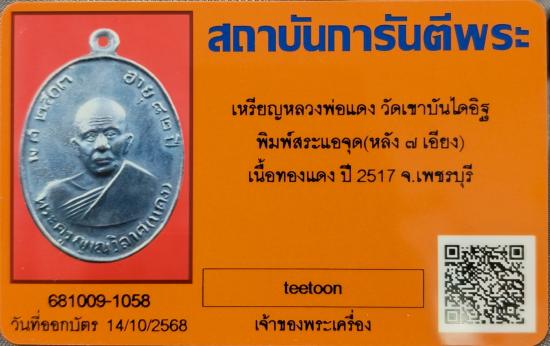 เคาะเดียว+ เหรียญ หลวงพ่อแดง วัดเขาบันไดอิฐ พิมพ์สระแอจุด(หลัง ๗ เอียง) เนื้อทองแดง ปี2517