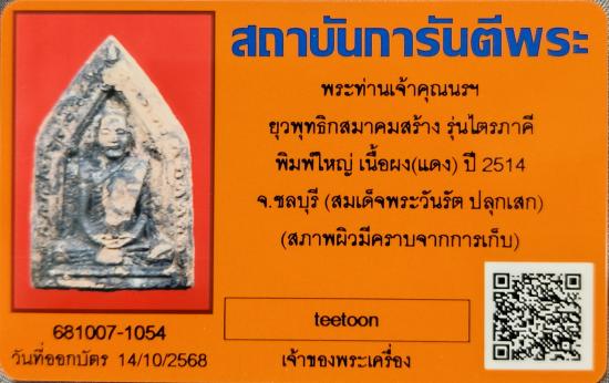 เคาะเดียว+ พระท่านเจ้าคุณนรฯ ยุวพุทธิกสมาคมสร้าง รุ่นไตรภาคี พิมพ์ใหญ่ เนื้อผง(แดง) ปี2514 จ.ชลบุรี (สมเด็จพระวันรัต ปลุกเสก) |