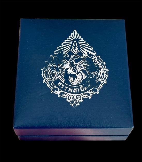 พระแก้วมรกต กรมสรรพสามิต จัดสร้างโดยวัดพระศรีรัตนศาสดาราม เนื้อเงินขัดเงา มีคราบปรอทเหลืองเหลือบรุ้ง ปี 2539 สภาพสวยพร้อมกล่องเดิม |