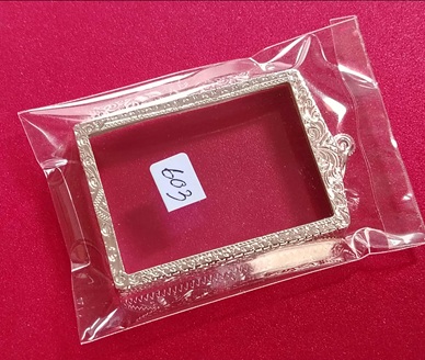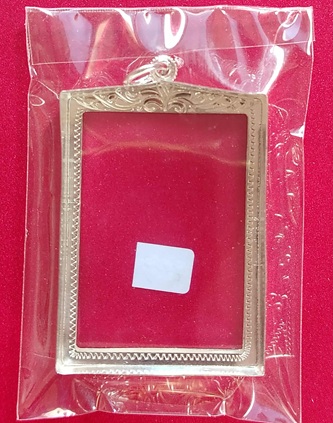 กรอบเงินแท้ สำหรับรูปถ่ายหลวงพ่อกวย หรือพระทรงสมเด็จท่มีขนาดใกล้เคียง งานแกะมือ