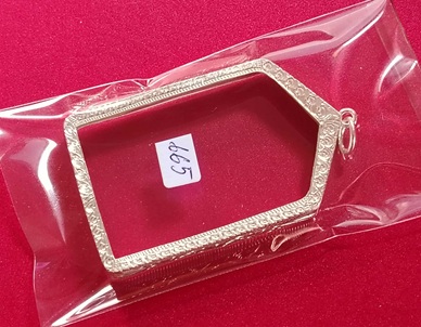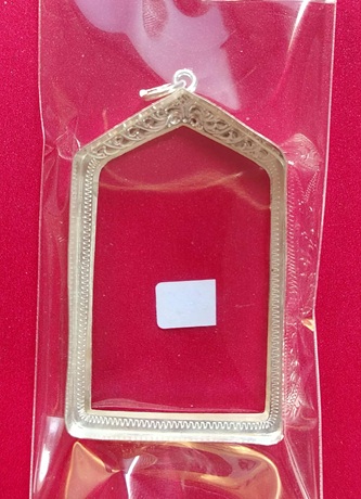 กรอบเงินแท้ สำหรับรูปถ่ายหลวงพ่อกวย งานแกะมือ โชว์ห่วง