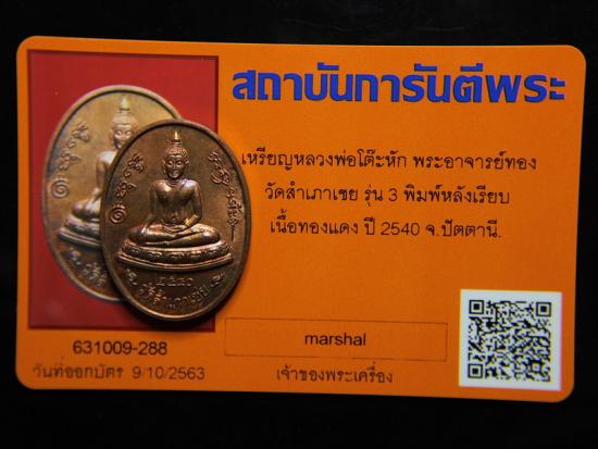 วัดใจ เหรียญหลวงพ่อโต๊ะหัก หลังเรียบ อาจารย์ทอง วัดสำเภาเชย ปัตตานี เนื้อทองแดง ปี2540 พร้อมบัตรG เช่าได้สบายใจ #6 |