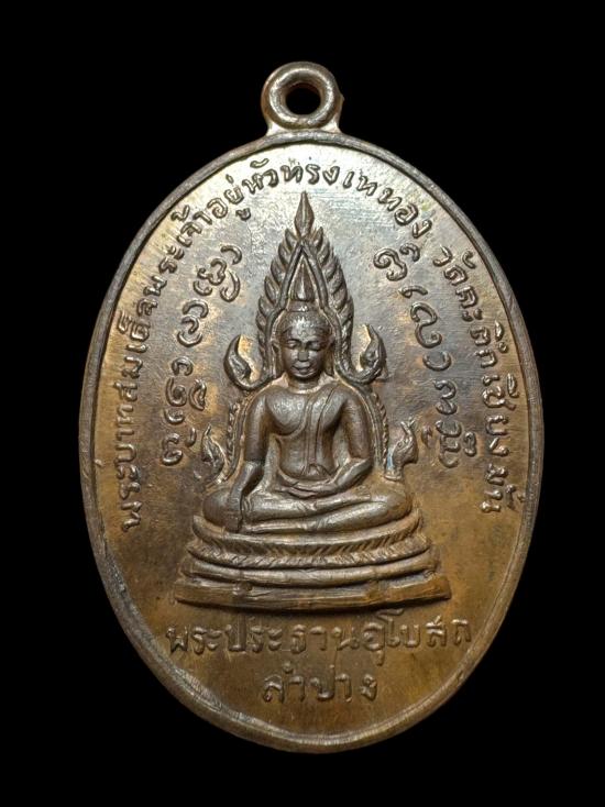 เหรียญ " พระประธานอุโบสถ วัดคะตึกเชียงมั่น " จ.ลำปาง พระบาทสมเด็จพระเจ้าอยู่หัว ร.9 ทรงเสด็จพระราชดำเนินยกช่อฟ้าหล่อพระประธานอุโบสถ วัดคะตึกเชียงมั่น ด้านหลังเป็นรูปเหมือนหลวงพ่อพระอินทวิชยาจาร จัดสร้างขึ้นในปี 2516 พร้อมกับเหรียญรุ่น 3 ของหลวงพ่อเกษม เขมโก พิธีจัดสร้างยิ่งใหญ่ |