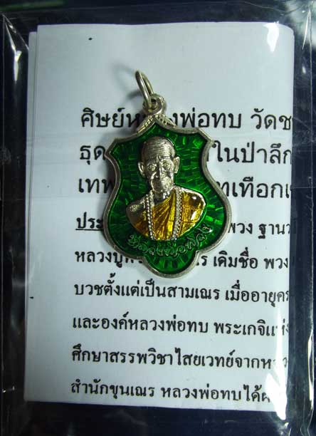 เหรียญรุ่นแรก เนื้ออัลปาก้าลงยาสีเขียว (แยกชุดกรรมการ) หลวงปู่พวง วัดน้ำพุสามัคคี จ.เพชรบูรณ์ จำนวนการสร้าง20เหรียญ สภาพสวยซองเดิม