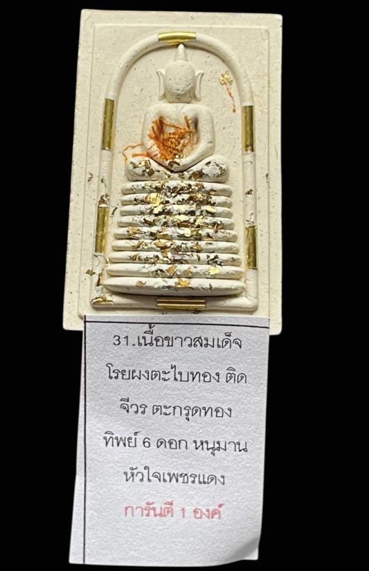 ..พระสมเด็จ 9 ชั้น รุ่น จินดามณีมนต์พระกาฬ หลวงปู่ศิลา วัดโพธิ์ศรีสะอาด จ.กาฬสินธุ์ เนื้อขาวสมเด็จ โรยผงตะไบทอง ติดจีวร ตะกรุดทองทิพย์ 6 ดอก หนุมานหัวใจเพชร No.28 พร้อมกล่องเดิมครับ |
