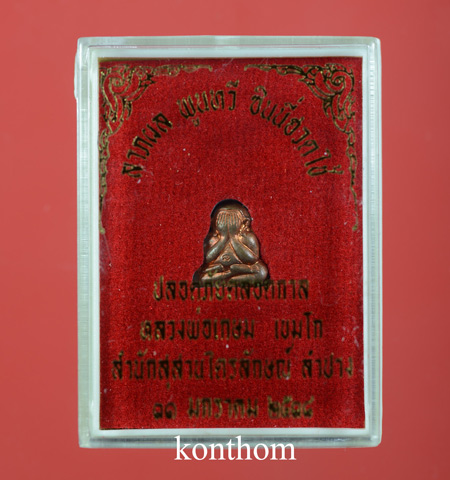 ปิดตาสาริกา หลวงพ่อเกษม เขมโก ปี 2538 เนื้อทองแดง พร้อมกล่องเดิมหายาก |