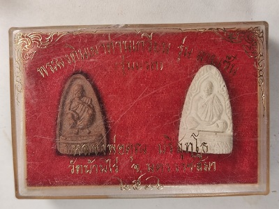 ชุดพระผงดินเผาด่านเกวียนรุ่นแรก ลพ.คูณ ปริสุทโธ วัดบ้านไร่ จ.นครราชสีมา ปี ๒๕๓๖ สภาพสวยมากๆทั้งสององค์ พร้อมกล่องเดิมจากวัดครับ |