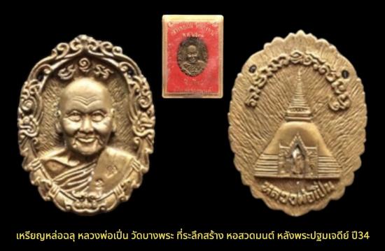 เหรียญหล่อฉลุ หลวงพ่อเปิ่น วัดบางพระ ที่ระลึกสร้าง หอสวดมนต์ หลังพระปฐมเจดีย์ ปี34 เคาะเดียว