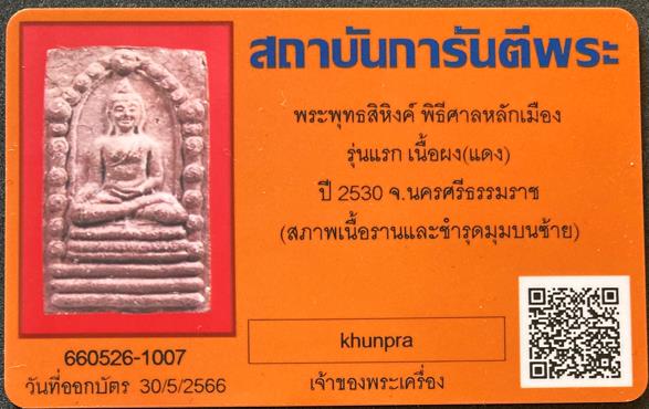 พระพุทธสิหิงค์ รุ่นหลักเมืองนครศรีธรรมราชปี 2530 เนื้อแดง