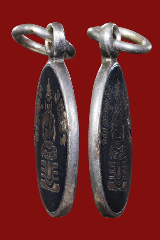เหรียญเม็ดแตง หลวงพ่อโสธร วัดโสธรฯ ปี 2509(ตลงปี) เนื้อเงินลงถม