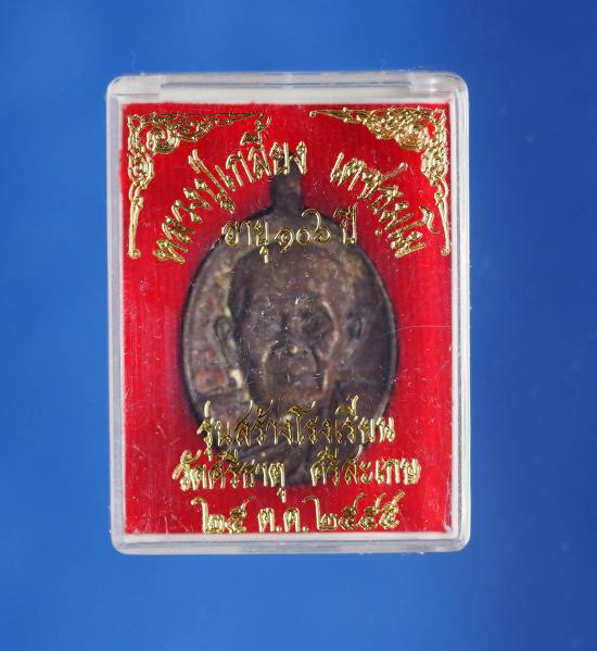 เหรียญหล่อชนวนโบราณ รุ่น สร้างโรงเรียน หล่อโบราณแบบมีห่วง ตอกโค๊ด หมายเลขหลวงปู่เกลี้ยง วัดโนนแกด สวยมากผิวเดิม กล่องเดิม เคาะแรก