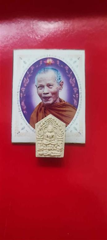 ขุนแผนยอดฉัตร เนื้อผงขาวหลังบรรจุ แผ่นโค๊ตยอดฉัตร พิมพ์เล็ก มูลนิธิหลวงปู่ทิมสร้าง ปี พ.ศ. 2553 มีขนาดสูง 2.2 x 1.5 ซ.ม. สภาพสวยสมบูรณ์