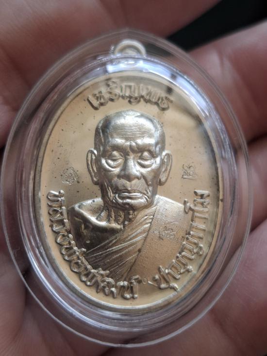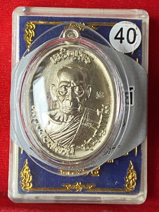 เหรียญเจริญพรบน 65 เนื้ออัลปาก้า-หลังแบบ เลขเดียว ๔ สร้าง 100 เหรียญ หลวงพ่อพัฒน์ ปุญฺญกาโม พร้อมเลี่ยมพลาสติก กล่องเดิมๆ