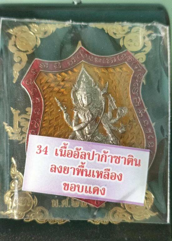 เหรียญ"ท้าวมหาพรหม"เจ้าสัวพันล้าน จัดสร้างโดยบอยท่าพระจันทร์ เนื้ออัลปาก้าซาติน คุ้ยพื้นลงยาเหลือง ขอบแดง หมายเลข ๑๔๖๒ พร้อมกล่อง พระสวยมากคับ น่าเก็บสะสม