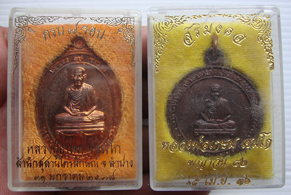 เหรียญ 7 รอบ ปี2538 ตอกโค๊ต + เหรียญ สิริมงคล ปี2536 ตอกโค๊ต ( หลวงพ่อเกษม เขมโก ) 2 เหรียญ กล่องเดิมสวยครับ