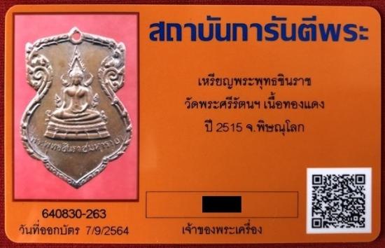 เหรียญพระพุทธชินราช วัดพระศรีรัตนฯ เนื้อทองแดง ปี 2515 จ.พิษณุโลก สวยมากพร้อมบัตรรับรอง