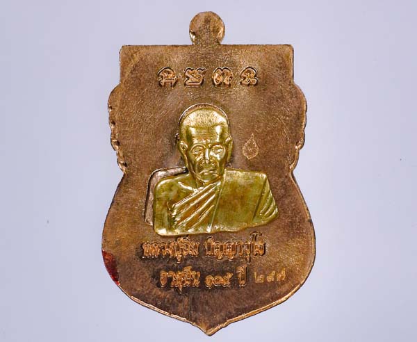*หน้ากาก หน้าหลัง เหรียญเสมาอายุยืน115ปี หลวงปู่อิ่ม วัดทุ่งนาใหม่ ด้านหน้า พ่อท่ายคล้าย วาจาสิทธิ์ หลังหลวงปู่อิ่ม เนื้อทองทิพย์ลงยา |