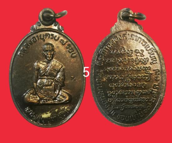วัดใจ เคาะเดียว 5 องค์ เหรียญหลวงปู่บุญมา มุนิโก รุ่นฉลองอายุครบ 7 รอบ วัดบ้านหนองตูม จ. ขอนแก่น เนื้อทองแดง ปี 2537 (ตอกโค๊ต)