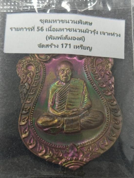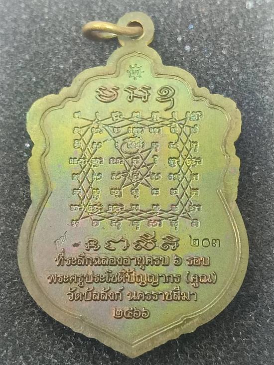 เหรียญเสมา๖รอบ หลวงพ่อคูณ วัดบัลลังก์ นครราชสีมา (ชุดมหาชนวนพิเศษ) เนื้อมหาชนวนผิวรุ้ง เจาะห่วง (พิมพ์เต็มองค์) สร้าง171เหรียญ No.203