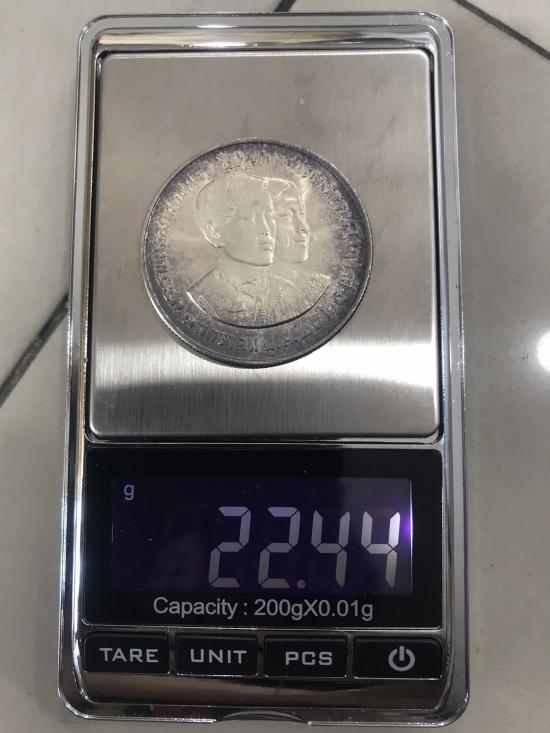 เหรียญกษาปณ์ที่ระลึกพระราชพิธีอภิเษกสมรส มหาวชิราลงกรณ์-โสมสวลี วันที่ 3 มกราคม 2520 ชนิดราคา 150 บาท เนื้อเงิน (น้ำหนัก22.44กรัม)