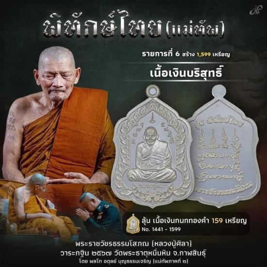เหรียญ พิทักษ์ไทย ( แม่ทัพภาคที่๒ ) หลวงปู่มหาศิลา สิริจันโท วัดพระธาตุหมื่นหิน จ.กาฬสินธุ์ เนื้อเงินบริสุทธิ์ พิมพ์ใหญ่ ซีนเดิมลุ้นเลขสวย ลุ้นกนกทองคำ