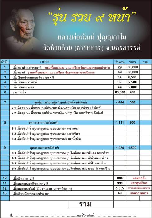 หลวงพ่อพัฒน์ วัดห้วยด้วน รุ่น รวย ๙ หน้า
