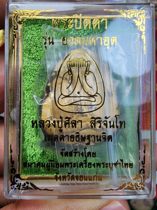 พระปิดตา ยอดมหาอุด หลวงปู่มหาศิลา สิริจันโท เนื้อผงไม้ตะเคียนปิดทองนำฤกษ์ ผงปิดตาสาริกาอัลปาก้า แยกชุดกรรมการ เบอร์ 195 |