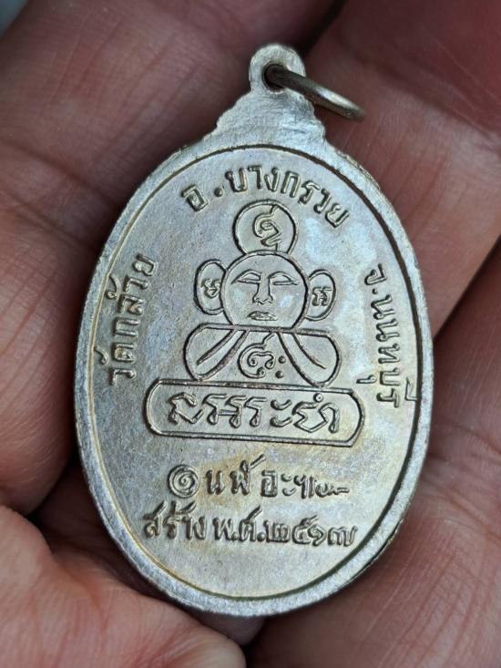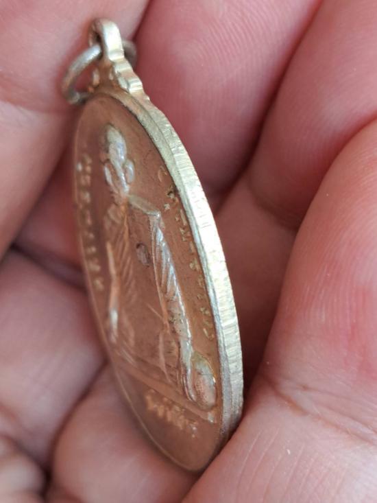 เหรียญหลวงพ่อชม วัดท่าไทร ออกวัดกล้วย ปี 17 เนื้อทองแดงกะหลั่ยเงิน |