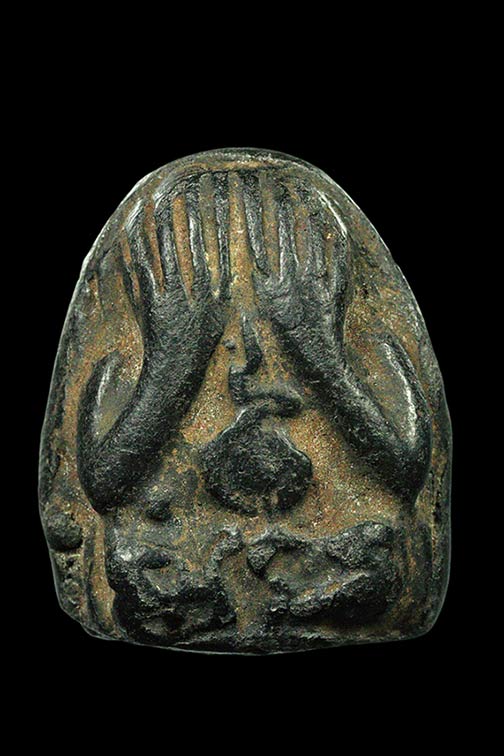 พระปิดตา สองหน้า เขย่ามีกริ่ง เนื้อผงใบลาน ไม่ทราบที่ |