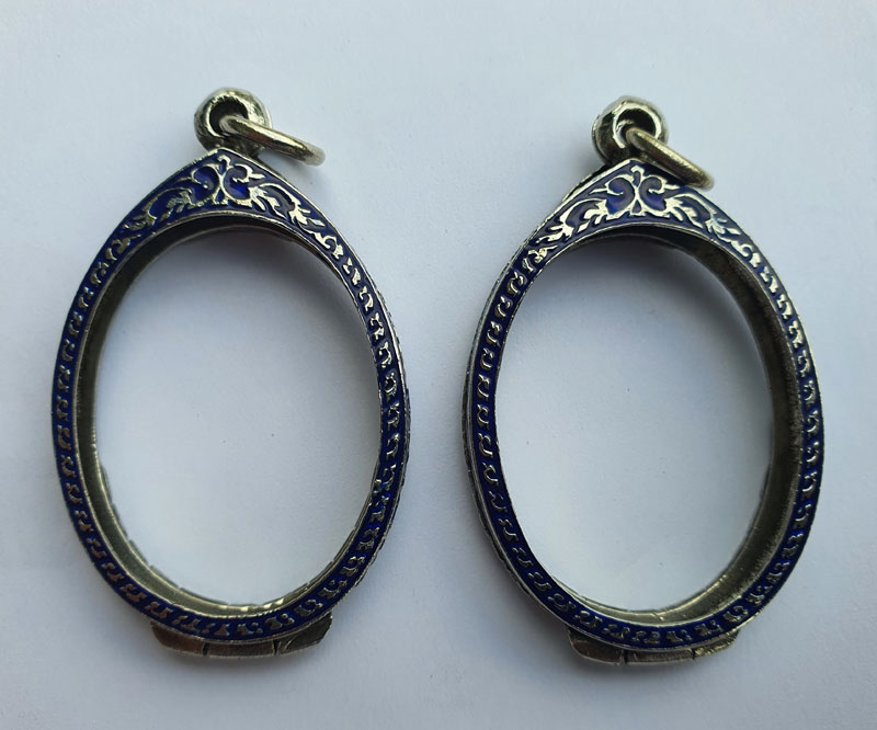 ตลับเงินรูปไข่ยกซุ้มลงยาอย่างดี ยกคู่ 2 ใบ สภาพดีเหมือนใหม่ ใส่เหรียญขนาด 2.7x3.5 ซม. #2 สวยสมบูรณ์ |