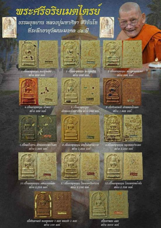 พระศรีอริยเมตไตรย์ หลวงปู่มหาศิลา สิรจันโท เมตตาตาอธิษฐานปลุกเสก ธรรมอุทยาน รายการที่ 12 เนื้อผงพุทธคุณ โรยเพชรหน้าทั่ง NO 210