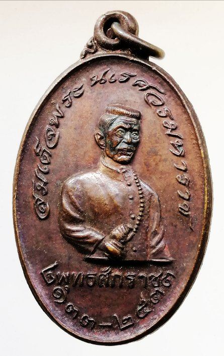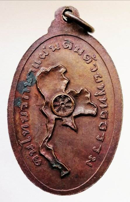 เหรียญสมเด็จพระนเรศวรมหาราช ด้านหลังเป้นรูปแผ่นที่ประเทศไทย ระบุคำว่า คนไทยรักษาแผ่นดินด้วยพุทธธรรม อธิษฐานจิตโดย หลวงพ่อจรัญ วัดอัพวัน ปี2533 เป็นเหรียญที่ประสบการณ์มากมาย มีประวัติเรื่องราวที่น่าสนใจ ยิ่งเป็นเนื้อทองแดงรมน้ำตาลเดิม ๆ สภาพสวยตรงตามรูป