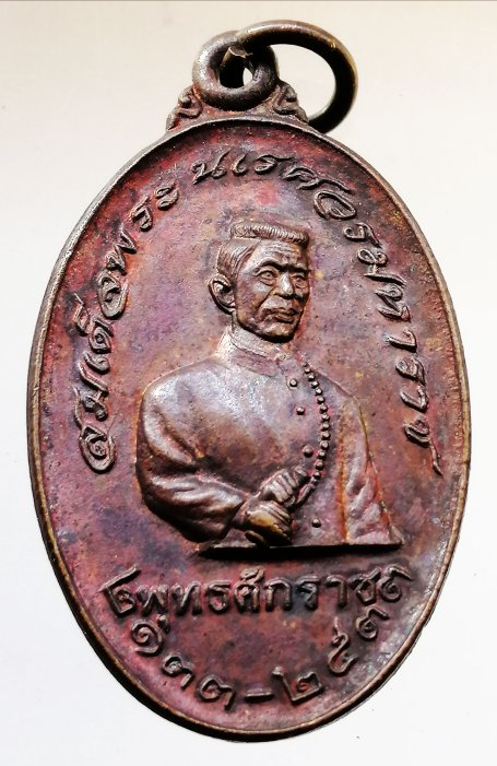 เหรียญสมเด็จพระนเรศวรมหาราช ด้านหลังเป้นรูปแผ่นที่ประเทศไทย ระบุคำว่า คนไทยรักษาแผ่นดินด้วยพุทธธรรม อธิษฐานจิตโดย หลวงพ่อจรัญ วัดอัพวัน ปี2533 เป็นเหรียญที่ประสบการณ์มากมาย มีประวัติเรื่องราวที่น่าสนใจ ยิ่งเป็นเนื้อทองแดงรมน้ำตาลเดิม ๆ สภาพสวยตรงตามรูป