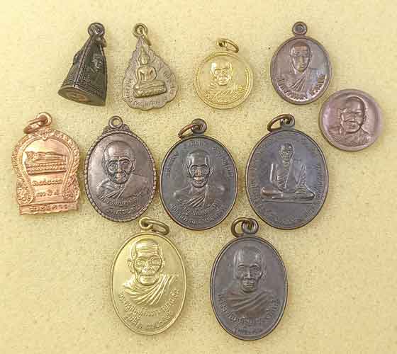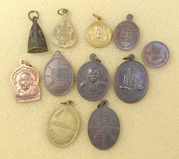พระกริ่งสามหน้า หลวงพ่อ แช่ม-ช่วง-เกลื้อม วัดฉลอง ภูเก็ต +เหรียญเกจิ 7 เหรียญ |