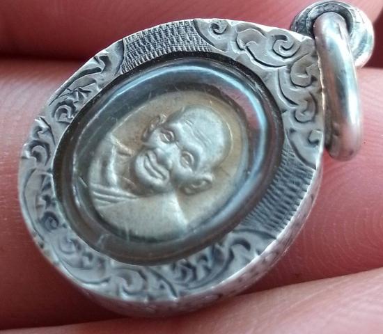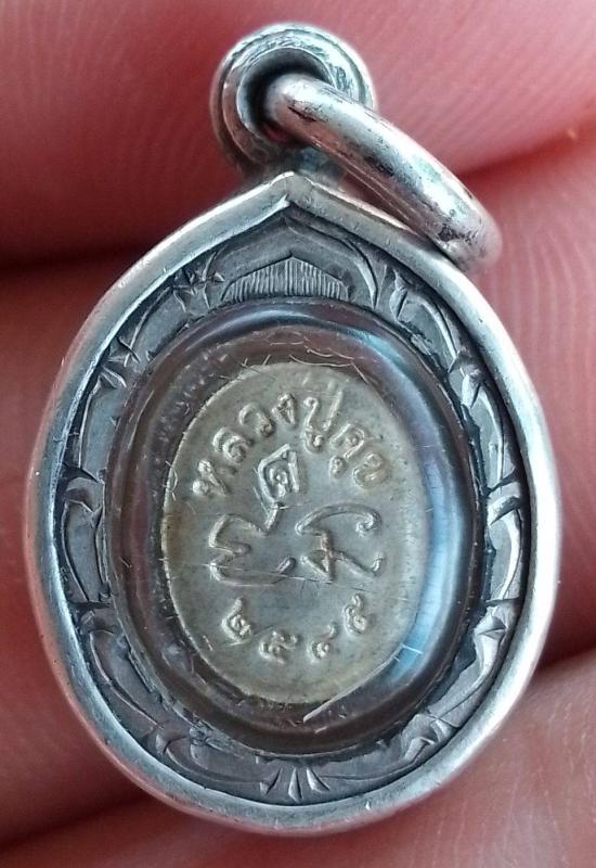 เหรียญเม็ดแตง เนื้อเงิน หลวงปู่ศุข วัดมะขามเฒ่า ปี 2545 พร้อมเลี่ยมเงิน