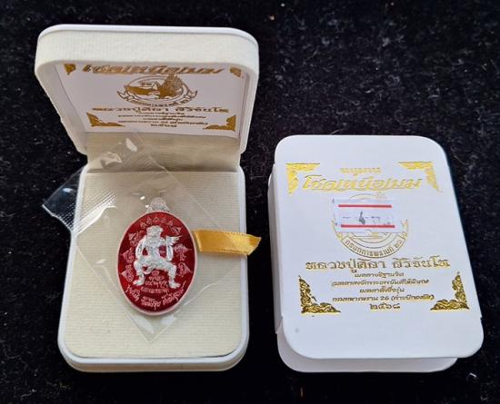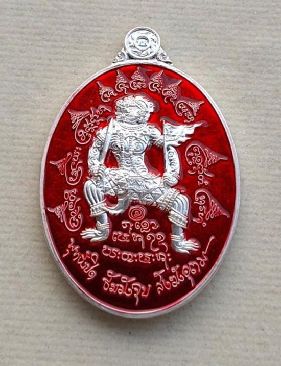 เหรียญพหูรมาน รุ่นโชคเหนือเมฆ หลวงปู่ศิลา เมตตาอธิษฐานจิต เนื้อเงินลงยาสีแดง No.37