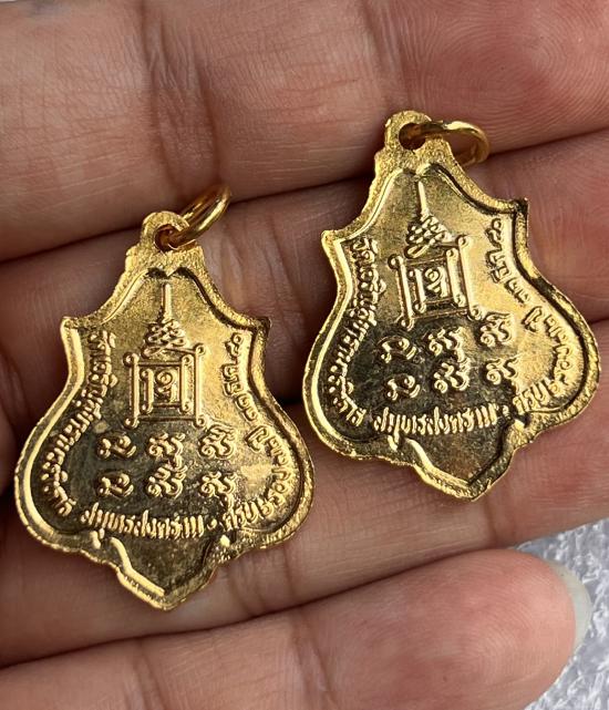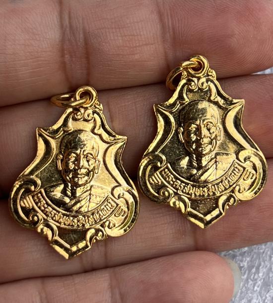 เหรียญพระครูสมุทรวิบูลย์วัฒน์ วัดเจริญสุขารามวรวิหาร ปี ๔๐ เนื้อกะไหล่ทอง จ.สมุทรสงคราม สวยเดิม2เหรียญ