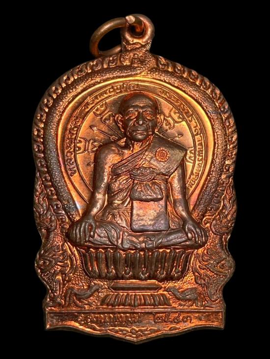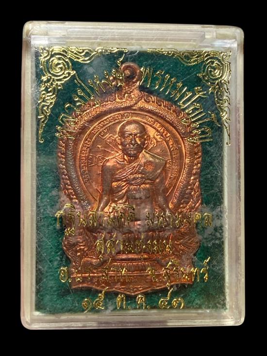 หลวงปู่หงษ์ พรหมปัญโญ เหรียญนั่งพาน ปี2543 แดงๆผิวเดิมๆ (2)