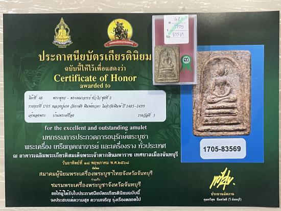 สร้างปี 2485 สภาพสวย สมบูรณ์ ไม่หักไม่ซ่อม รับประกันพระแท้ ดูง่าย ใบประกาศรางวัลที่3งานสมาคม