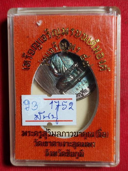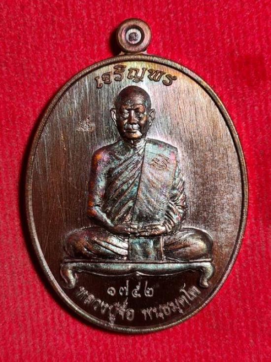 เหรียญหลวงปู่จื่อ พันธมุตโต รุ่น เจริญพรบน 59 ออกวัดเขาตาเงาะอุดมพร จ.ชัยภูมิ ปี 59 เนื้อ ทองแดงรมมันปู หมายเลข 1752 สภาพสวย เคาะเดียวแดง
