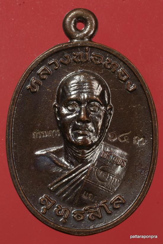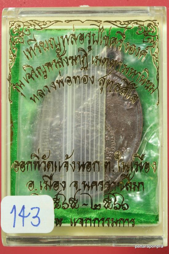 เหรียญหล่อโบราณ หลวงพ่อทอง รุ่นเจริญพรสังฆาฏิ ปี 2566 เนื้อทองแดงรมดำ หมายเลข 143