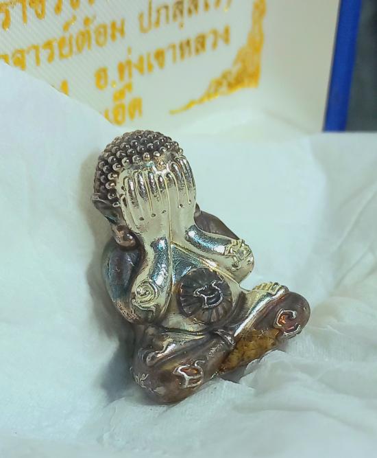 พระปิดตา เจริญยศ รวยไม่ยั้ง พระอาจารย์ต้อม ปภสุสโร วัดท่าสะแบง เนื้อเงินคูณไท้ ฝังเม็ดยาเงิน มีกล่องเดิม สร้างน้อย 299 องค์ รายการที่ 4 เนื้อเงินคูณไท้ (รมดำรุ้ง) พระปิดตา