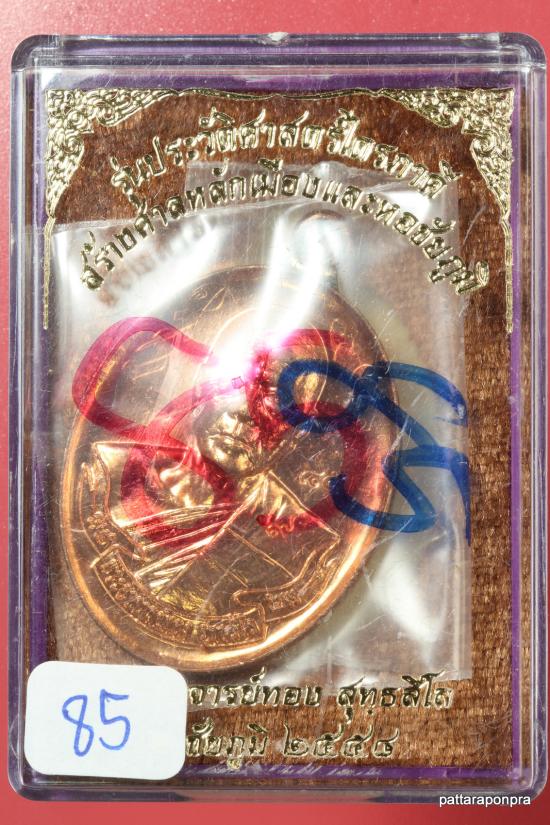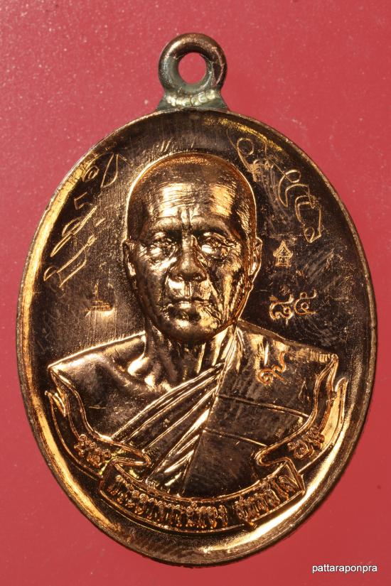 เหรียญห่วงเชื่อมหลวงพ่อทอง รุ่นไตรภาคี ปี 2558 เนื้อทองแดงผิวไฟ โค๊ต๙ แยกจากชุดกรรมการ มีจาร หมายเลข 85