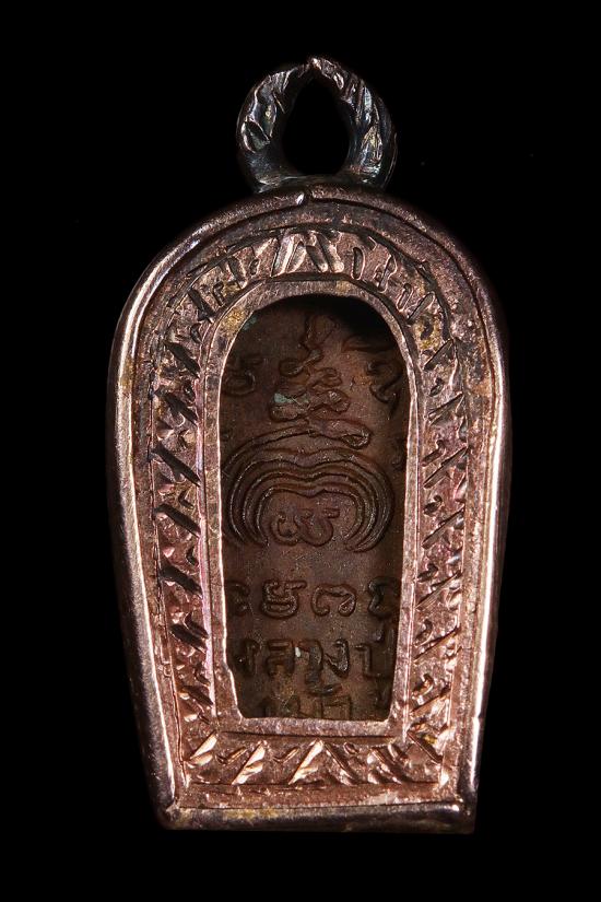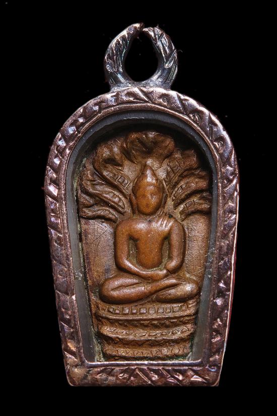 ปรกมะขาม หลวงปู่เม้า วัดสี่เหลี่ยม บุรีรัมย์ ปี2517 เนื้อทองเเดง พร้อมกรอบนาค