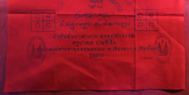 ผ้ายันต์ มหาอำนาจครอบจักวาล ครูบออ ปัณฑิต๊ะ สำนักสงฆ์พระธาตุดอนจอมแวะ อ.เชียงดาว จ.เชียงใหม่ รุ่นแรก ครับ (พระบ้าน ครับ) |