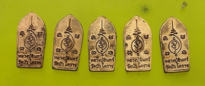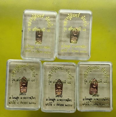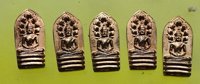 ห้าองค์งามๆ พระปรกใบมะขามเนื้อทองแดง รุ่นสร้างบารมี ๘๕ หลวงปู่อินทร์ นันโก วัดบัว จ.นครราชสีมา ปี ๕๗ สวย พร้อมกล่องเดิม วัดใจ