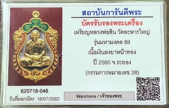 @@@ เหรียญเสมามหามงคล หลวงพ่อสิน ปี ๒๕๖๐ เนื้อเงินหน้าทองคำขอบทองคำลงยา กรรมการ